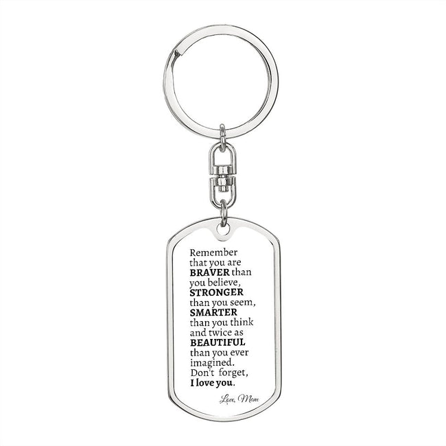 This quality Graphic Dog Tag Keychain is the perfect keepsake! Whether for yourself or a loved one.