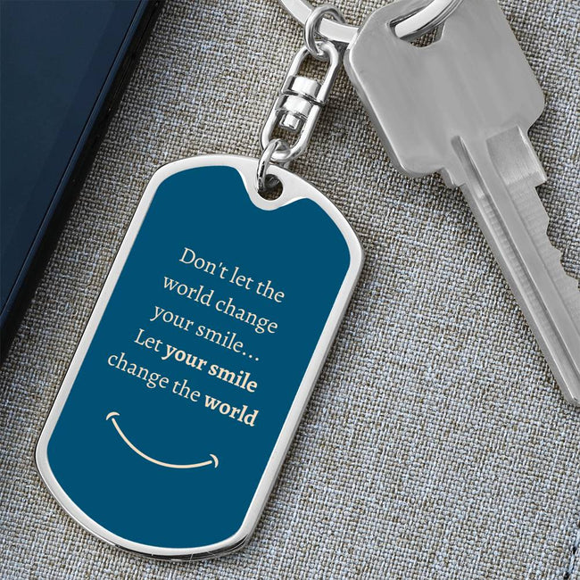 Dog Tag Key Chain_Smile change world_teal