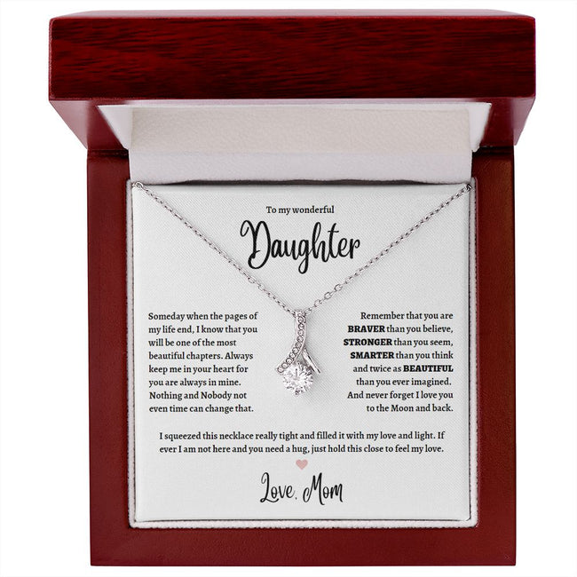 Imagine her reaction when she opens this stunning gift! The Alluring Beauty necklace features a petite ribbon shaped pendant that is sure to dazzle your special someone. Whether it's a birthday or anniversary, make sure to get her a gift she will love for years to come.